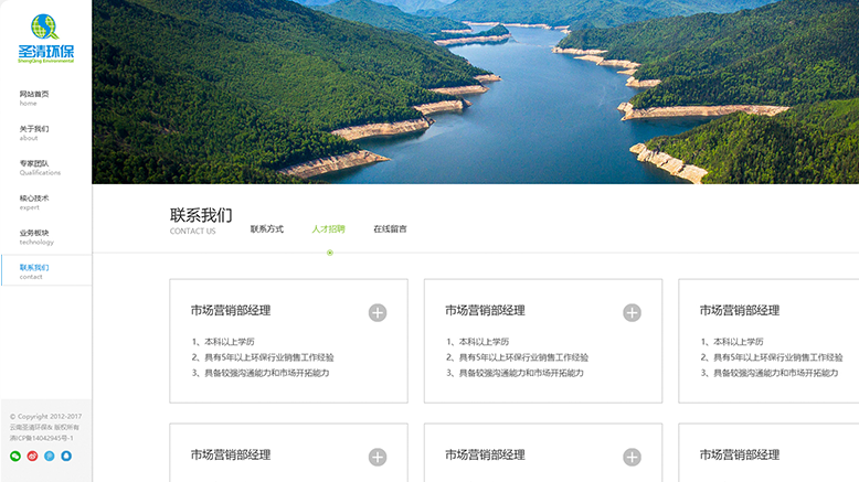 網(wǎng)站設計總體的色調延用VI運用標準色,banner以“天人合一,創(chuàng )建圣潔清新之地”為使命,打造“自然保護區生態(tài)恢復”為主題,留住用戶(hù)第一印象,增強品牌形象,另外導航欄在左側顯示,力求在視覺(jué)上打破傳統的方式,給人眼前一亮的感覺(jué)。