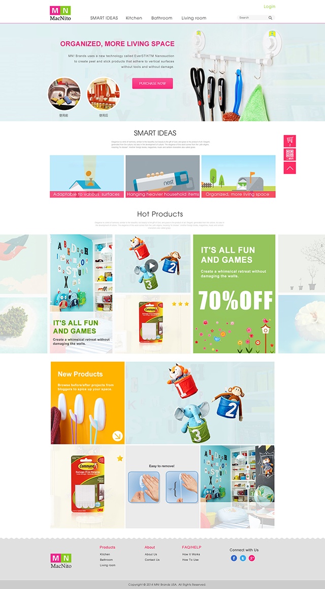 設計師:根據您之前的需求,您想要簡(jiǎn)約、明快、年輕、有活力的網(wǎng)站,所以配色應該是明度和純度都相對比較高的顏色?;谫F公司的產(chǎn)品是高端的果蔬飲料,面對人群的收入和審美偏好都屬于高端人群,所以最后決定將配色的明度略微降低了一些,并且采用了富于健康、自然、活力的嫩綠色作為主色調,營(yíng)造出果蔬飲料本身的純天然、健康飲品。
